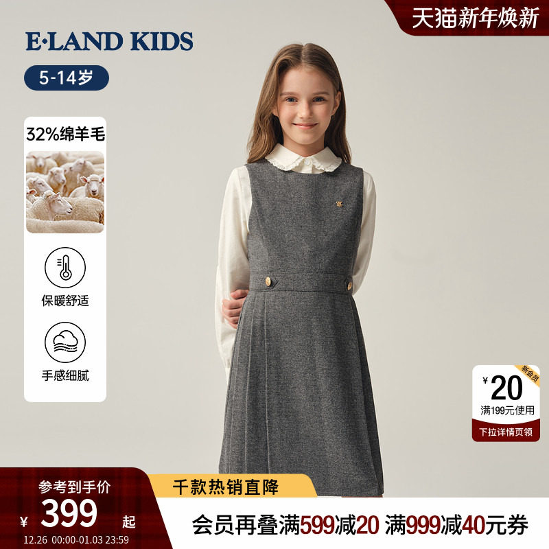 【32%绵羊毛】eland kids衣恋童装女童连衣裙2025冬新品无袖裙子