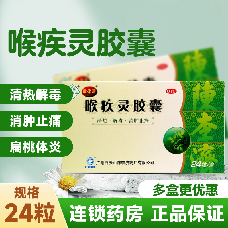陈李济喉疾灵胶囊0.25g*36/24粒咽喉炎慢性咽炎喉咙痛扁桃体肿大