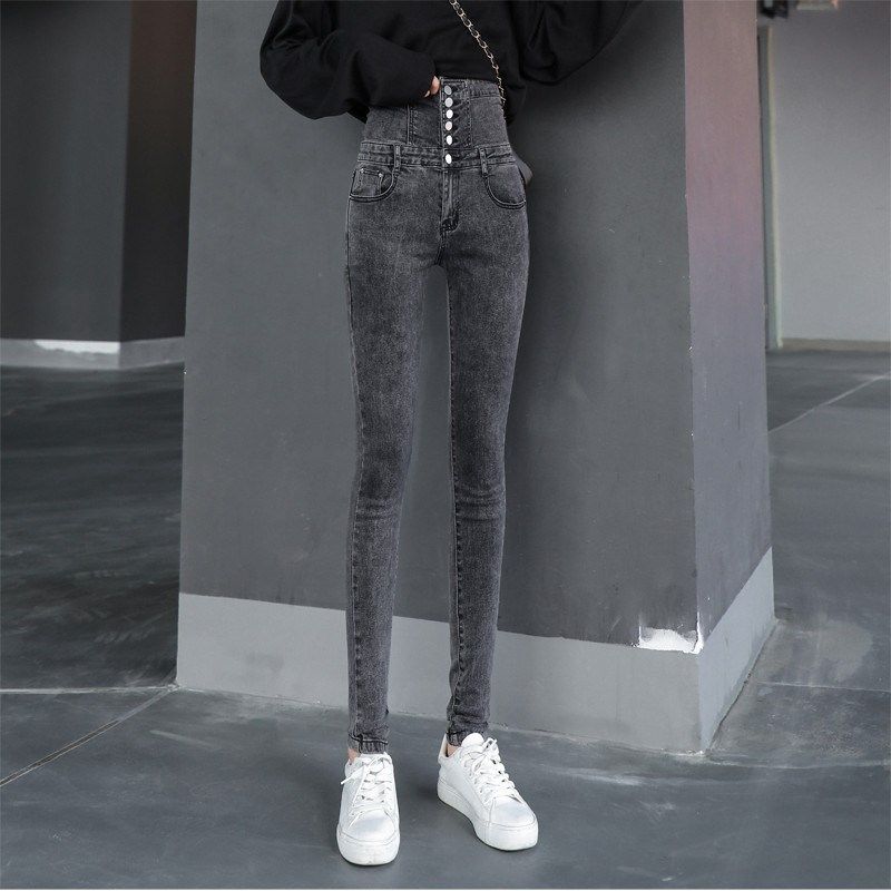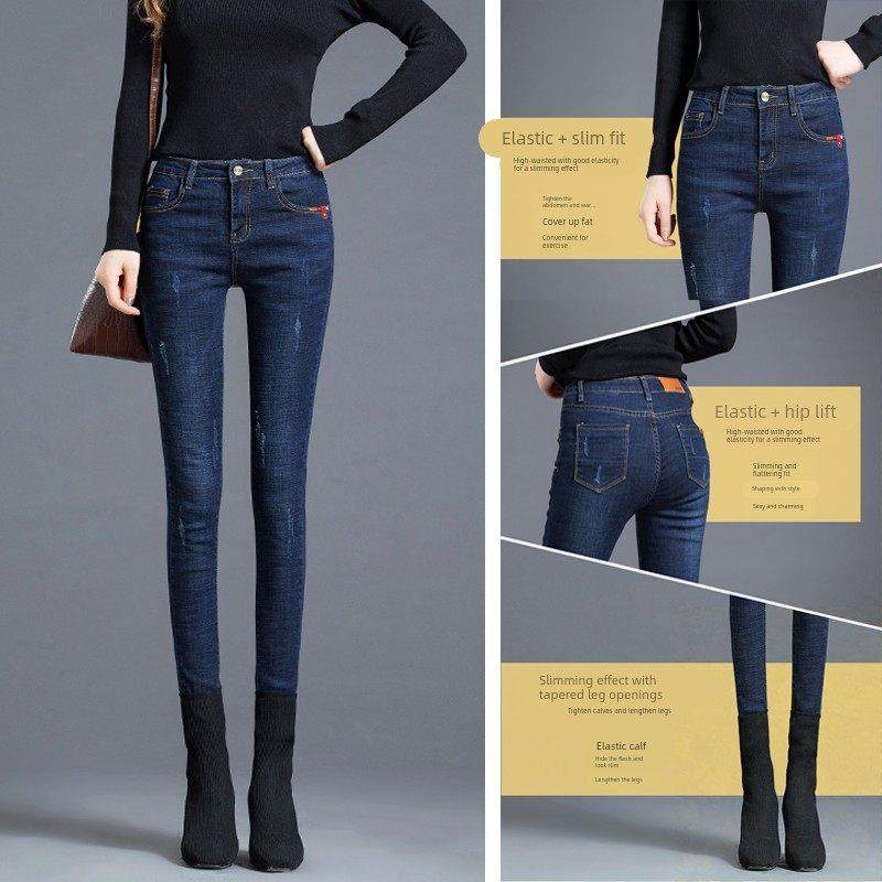 高腰牛仔裤女春秋2025新款韩版百搭铅笔长裤显高加长紧身小脚裤子