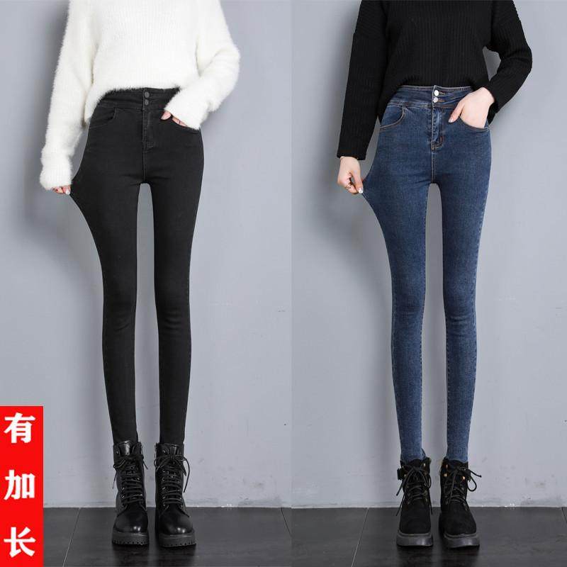 超高腰牛仔裤女加长版秋冬铅笔裤紧身小脚裤175加绒厚高个子长裤