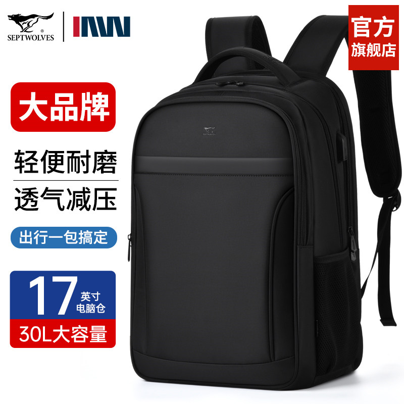 七匹狼大容量男士双肩包休闲旅行背包高中初中生书包大学生电脑包