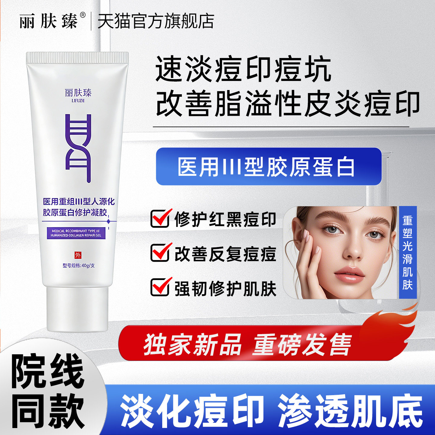 丽肤臻医用重组三型人源化胶原蛋白Ⅲ型修护凝胶粗毛孔法令纹痘坑