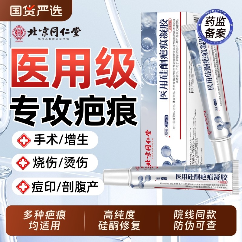 北京同仁堂祛疤膏除去疤痕修复硅酮凝胶医用烫伤手术剖腹产增生AA