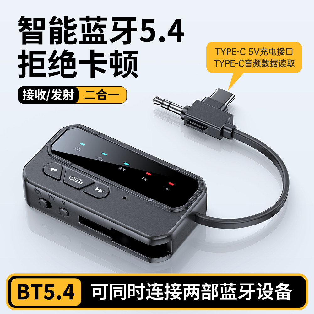 一拖二AUX+TYPE-C双头5.4蓝牙接收发射器音响功放车载蓝牙适配器
