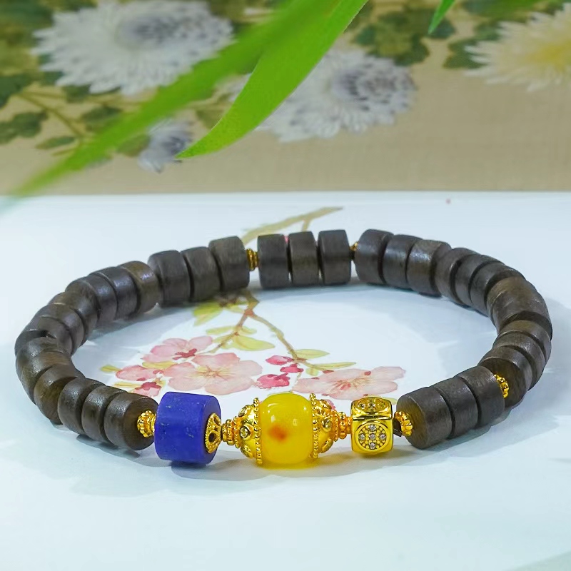七夕送礼送女友送爱人天然蜜蜡镶嵌新中式复古桶珠手串情人节礼物