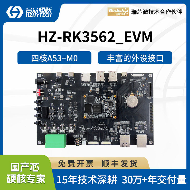 合众恒跃瑞芯微RK3562J工业级全国产四核A53 2GHz主频开发板套件