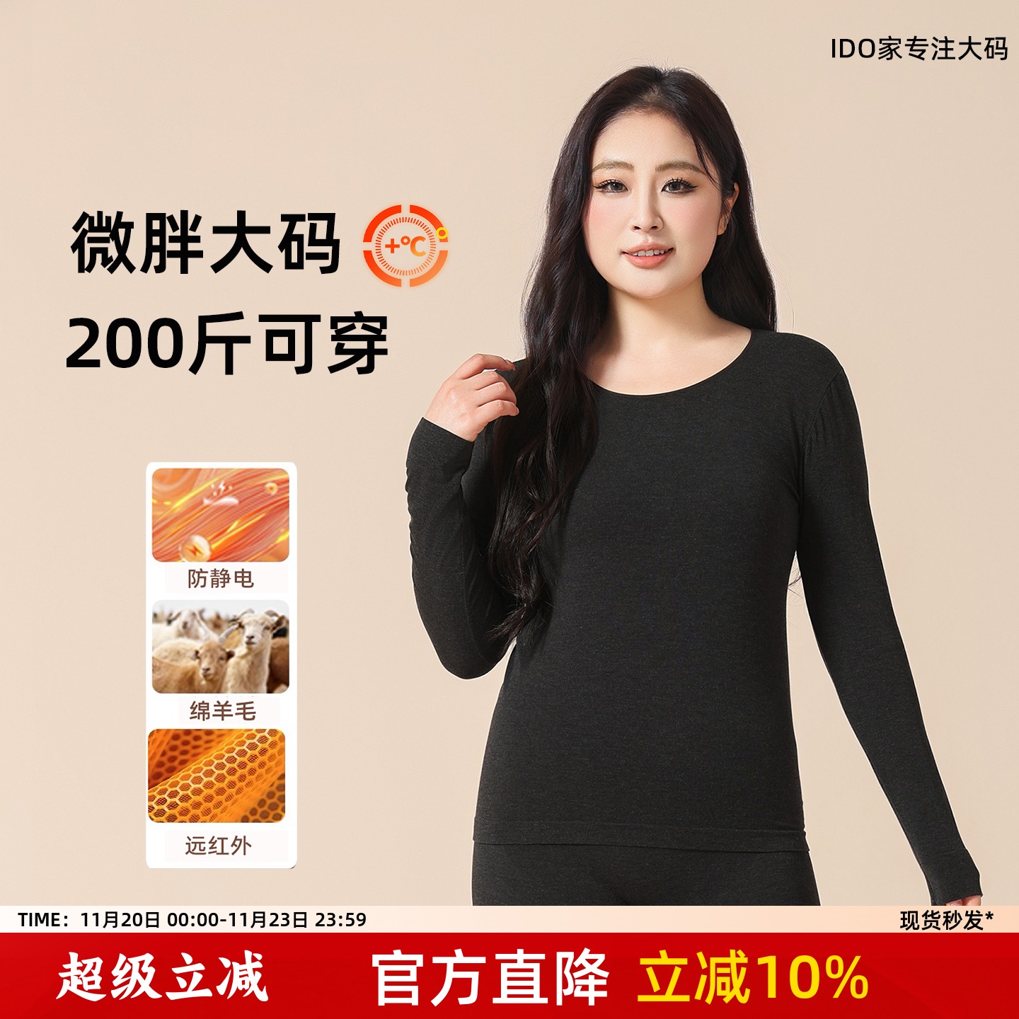 大码肌底衣保暖内衣女自发热绵羊毛秋衣秋裤胖mm200斤抗秋冬套装