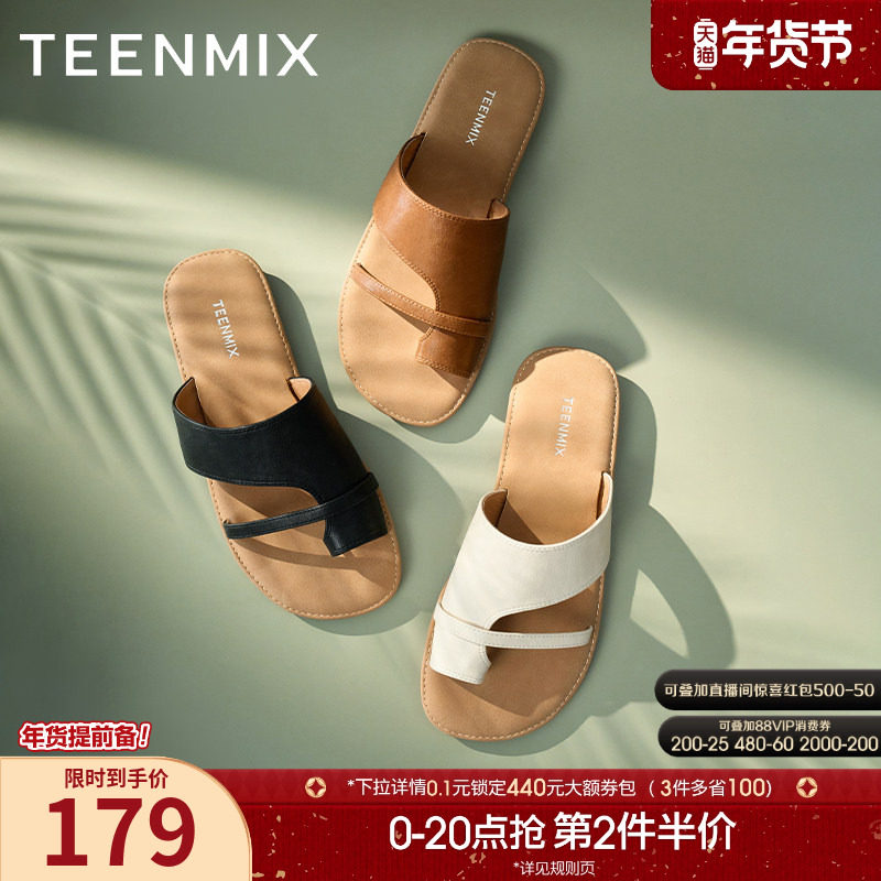 天美意一字拖度假平底拖鞋女外穿凉拖休闲凉鞋夏季新款KT073BT5