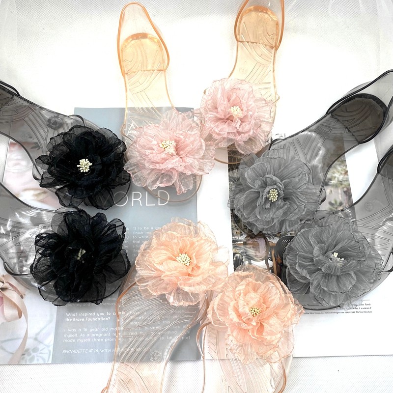 韩版新款果冻凉鞋女夏平底防滑大花朵鱼嘴透明水晶塑料平跟凉拖鞋
