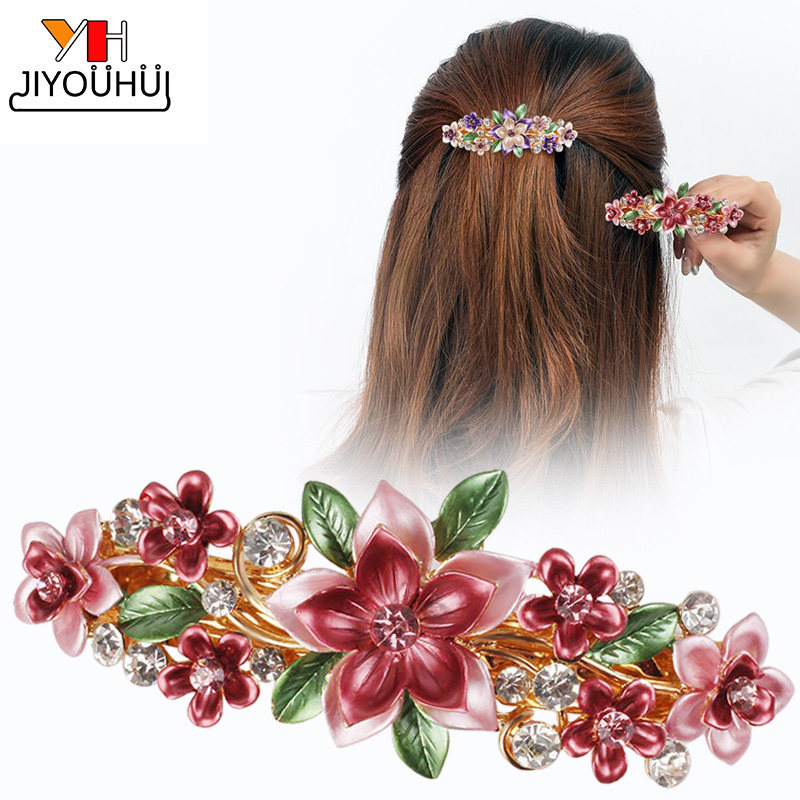 水晶花朵发夹韩式立体一字夹后脑勺头饰高级感妈妈盘头发用的发夹