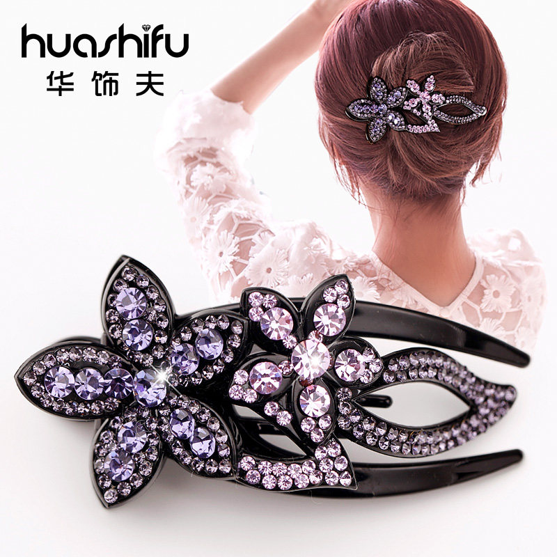 发夹韩式简约盘发卡发插发饰水钻花朵发梳插梳刘海梳头成人发夹子