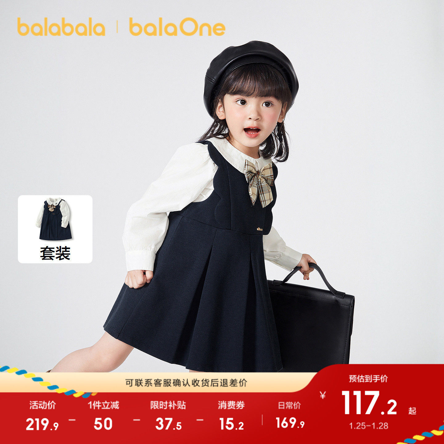 巴拉巴拉童装女童连衣裙套装学院风背带裙两件套2025新款秋装洋气