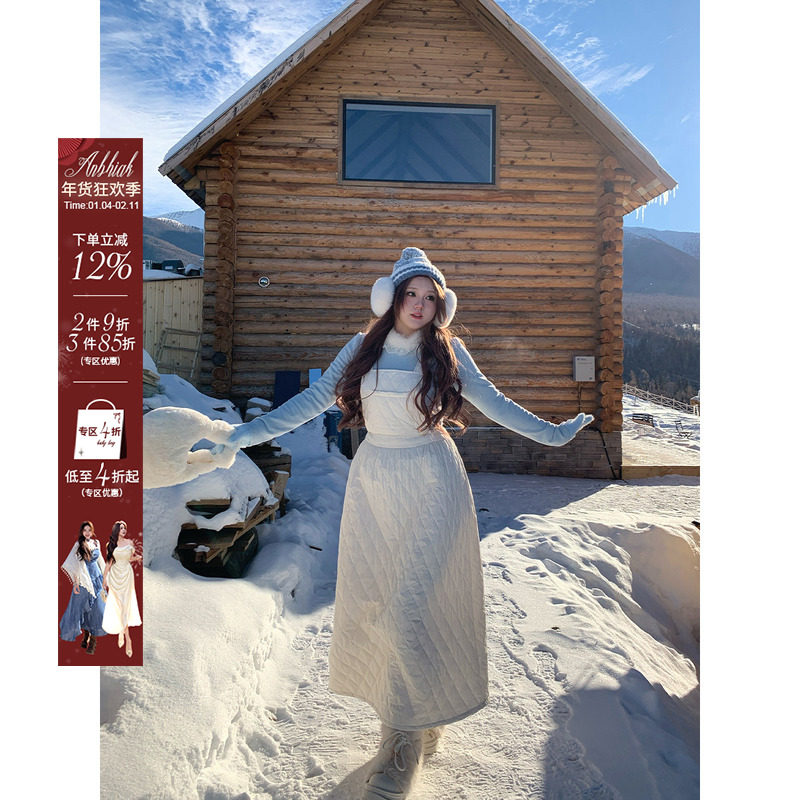 森女部落原创雪人羊羔绒背带裙A字春秋连衣裙套装2025年新款女装