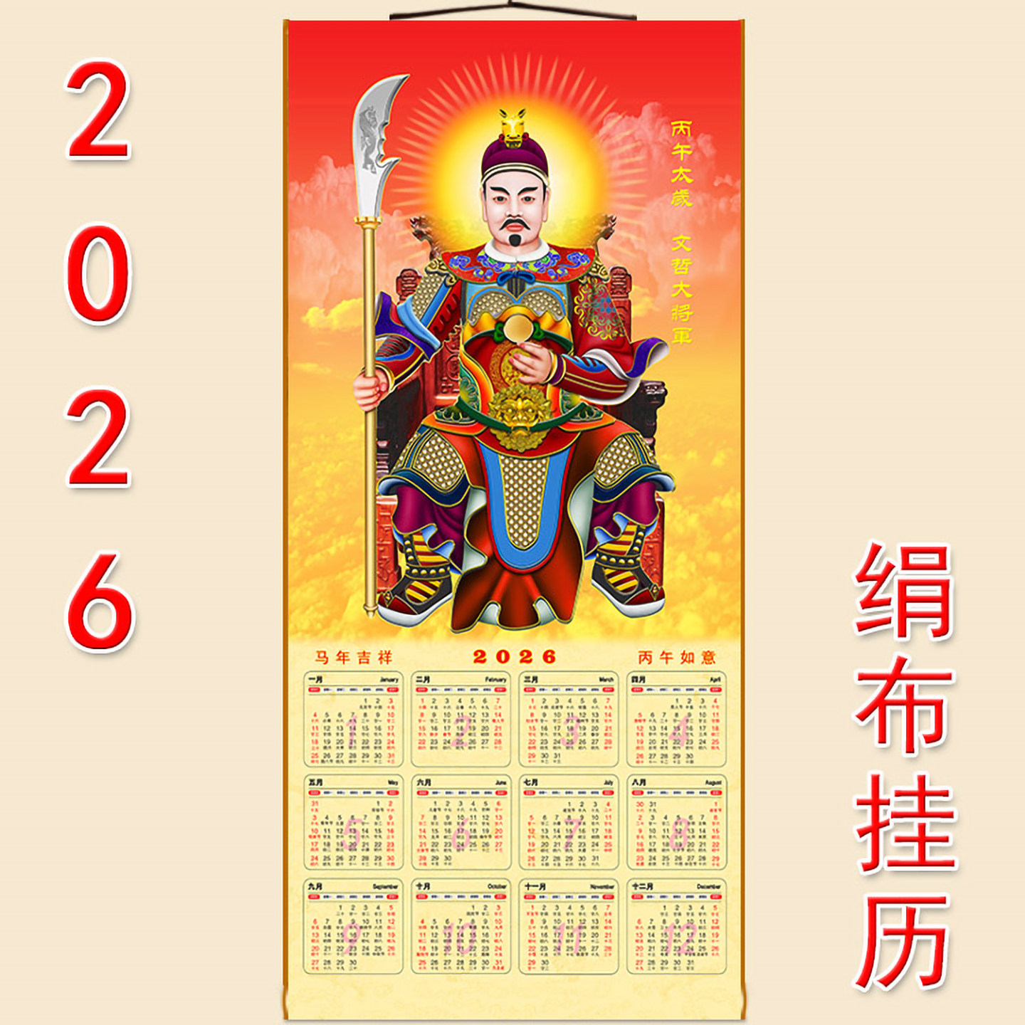 2026年挂历 文哲太岁星君画像年历卷轴挂画 马年绢布装饰字画定制