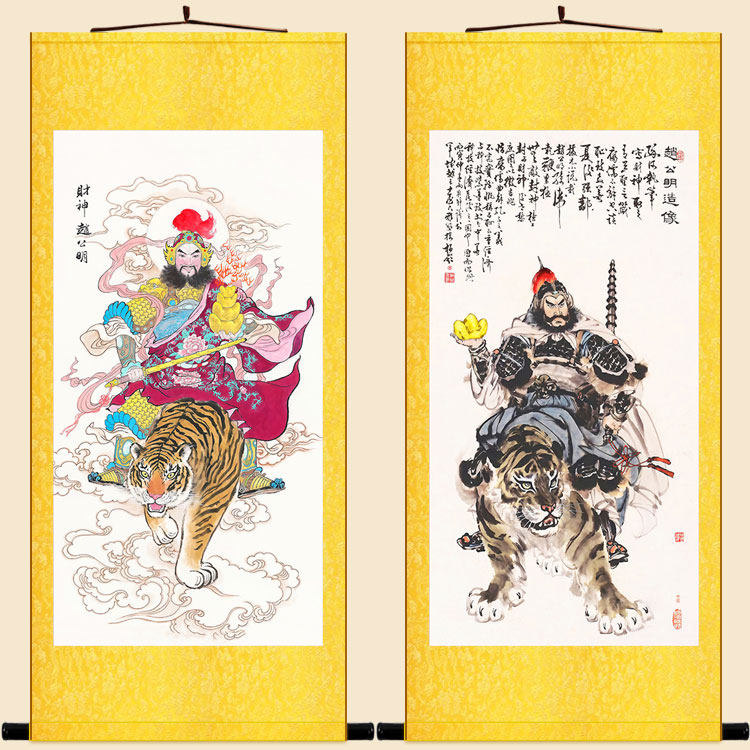 武财神画像 赵公明黑虎赵玄坛神仙画卷轴挂画 丝绸画装饰字画定制