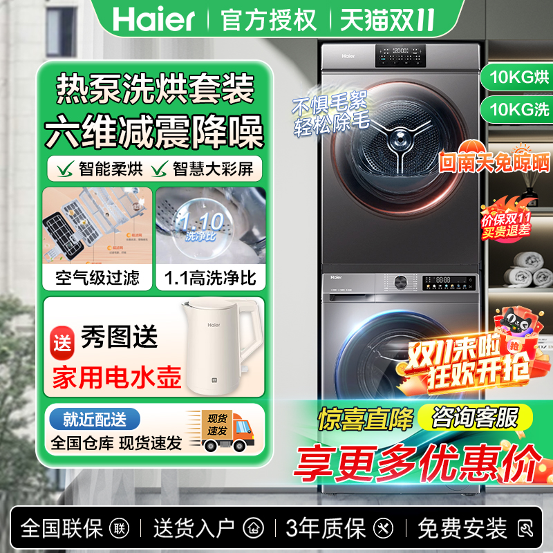 海尔 10+10kg洗烘套装全自动家用滚筒洗衣机热泵烘干衣机MATE7W
