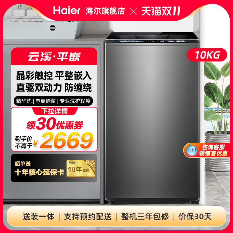海尔洗衣机全自动7/8/10/12公斤统帅大神童直驱出租房家用波轮kg