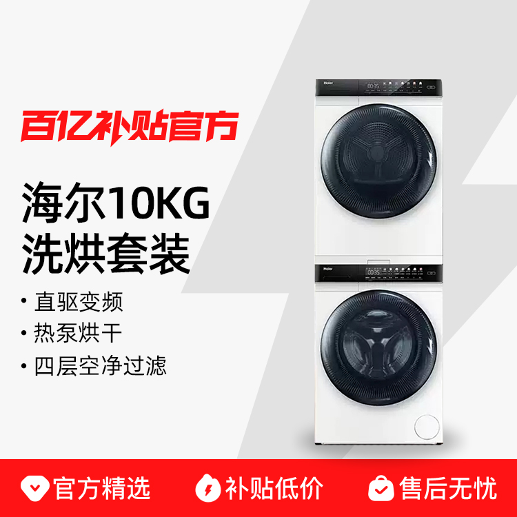 海尔10公斤洗烘套装组合家用全自动洗衣机烘干衣服大容量超薄7kg