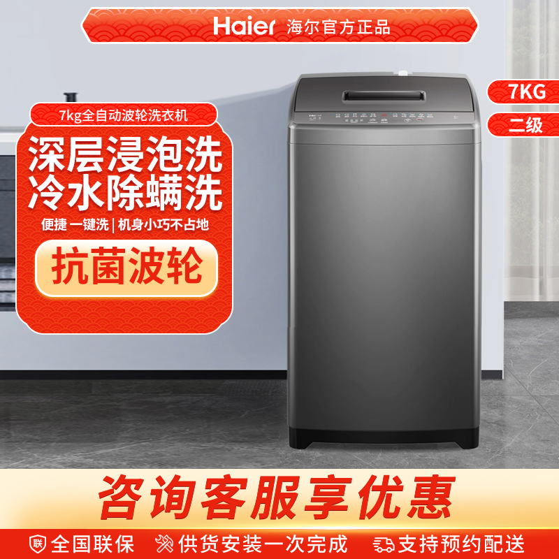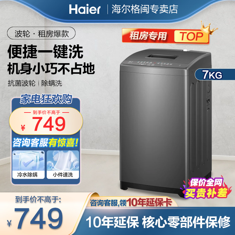 海尔波轮洗衣机7kg大容量家用全自动租房小型抗菌除螨1269