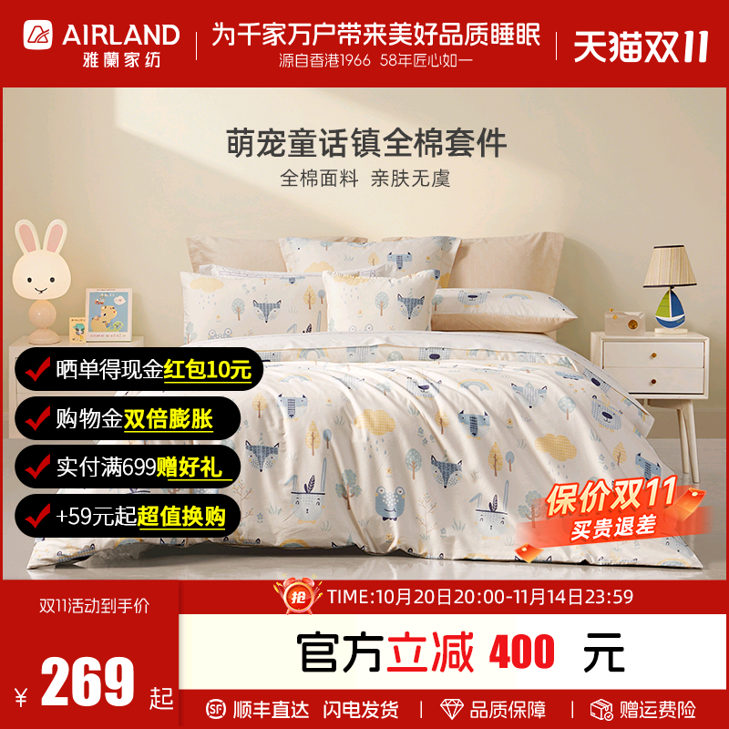 雅兰家纺萌宠童话镇床上四件套纯棉床单被套卧室宿舍全棉2025新款