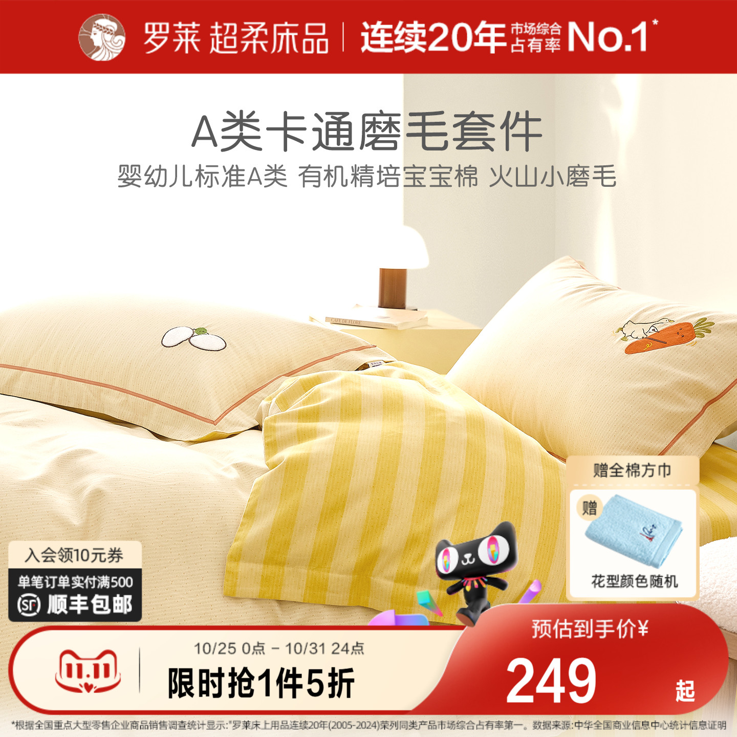 罗莱家纺儿童磨毛三四件套加厚保暖纯棉全棉被套双人床单学生宿舍