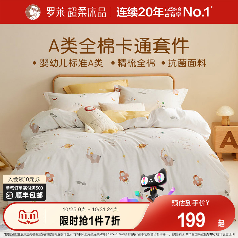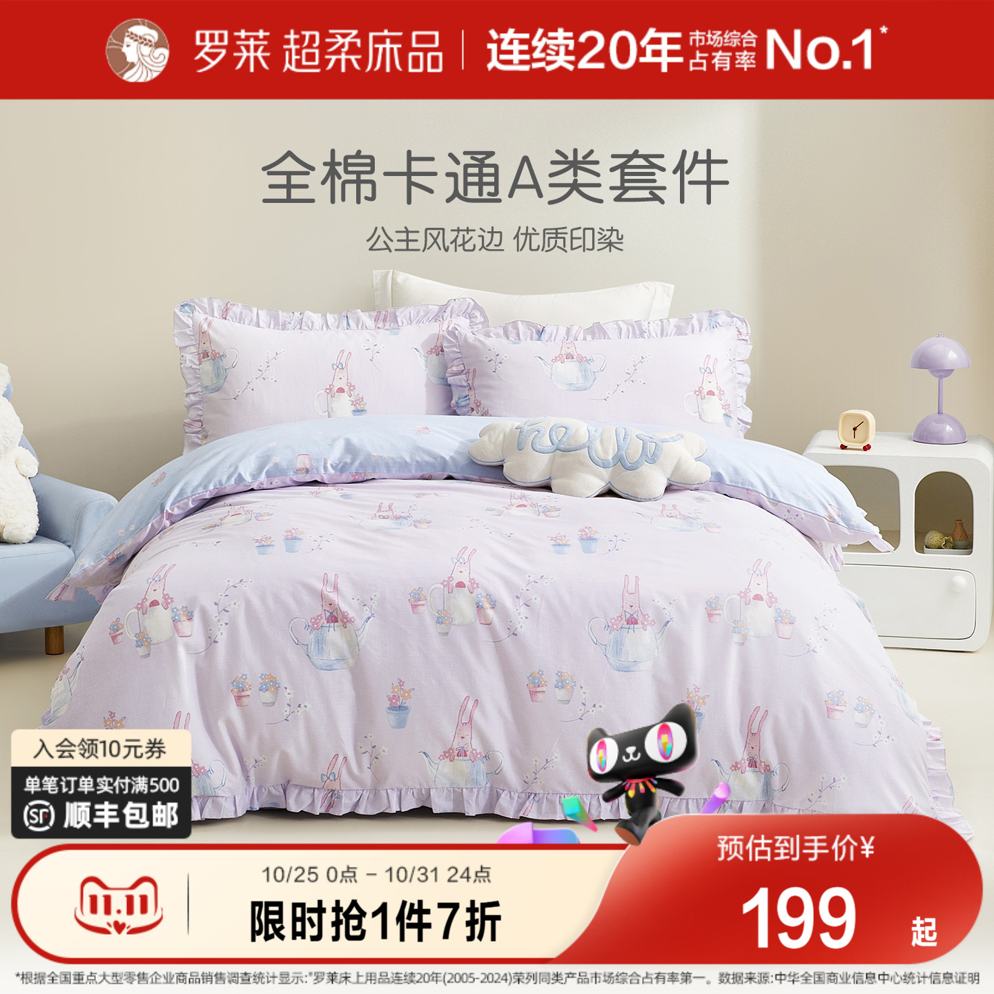 罗莱家纺官方儿童新款纯棉三件套床单床笠被套被罩床上用品四件套