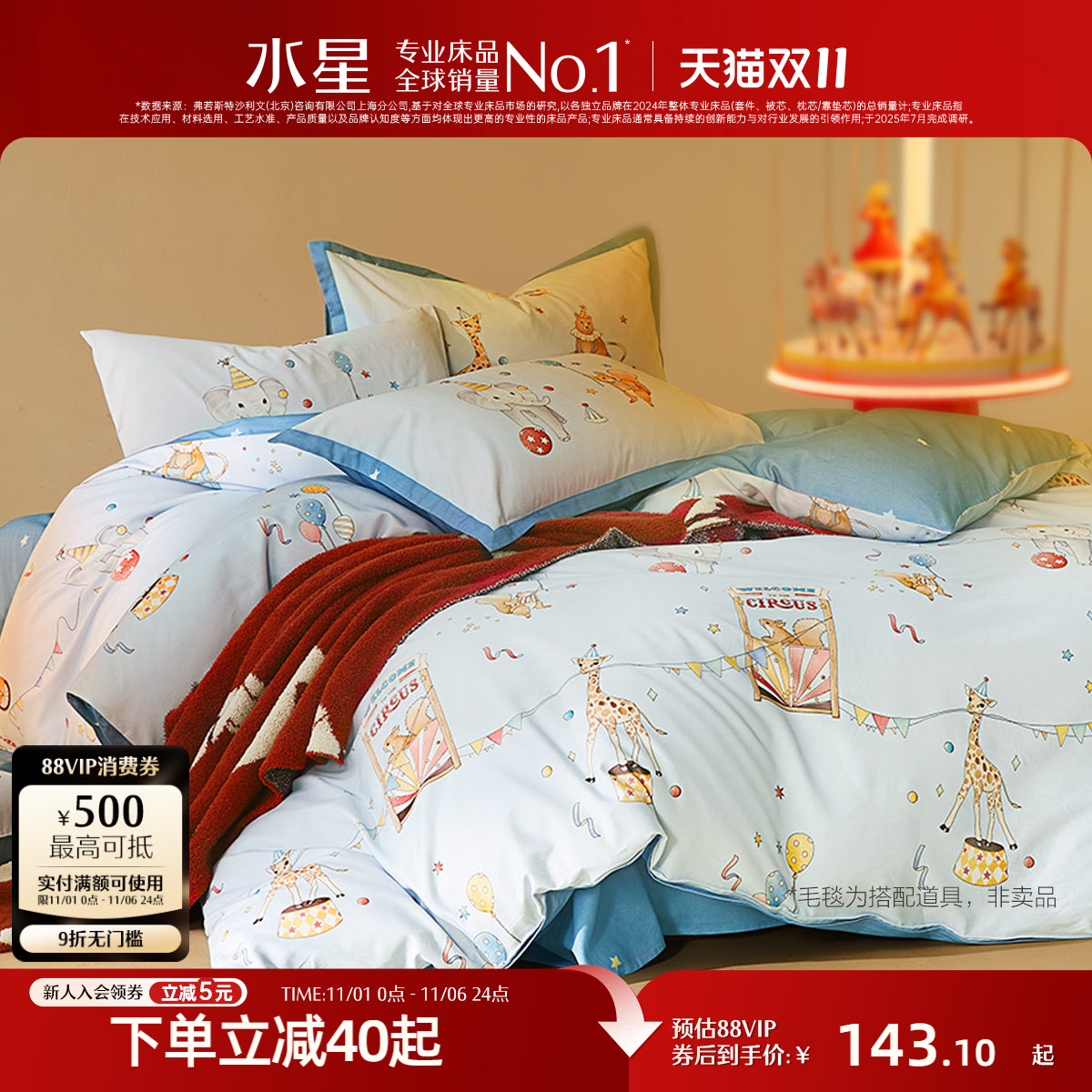 水星儿童家纺三/四件套40S纯棉A类抗菌床单被套四季男女童套件