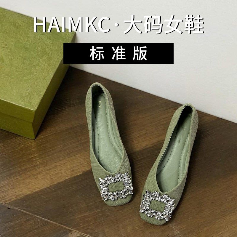 大码女鞋41一43单鞋女绿色水钻2025秋季新款超火带钻平底浅口船鞋