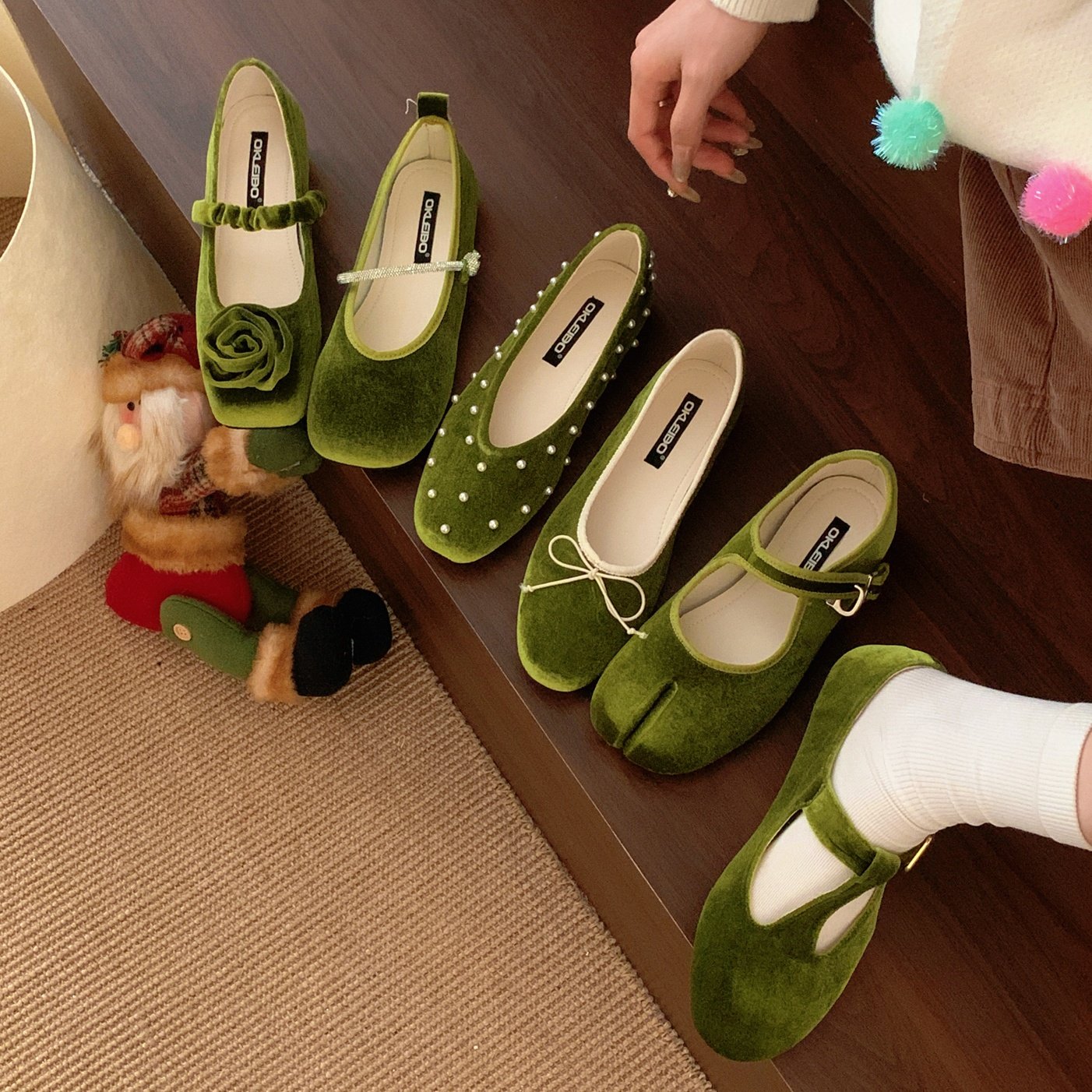女真皮外贸鞋单鞋分趾鞋女鞋羊皮芭蕾舞新款绿色平底2025平底鞋