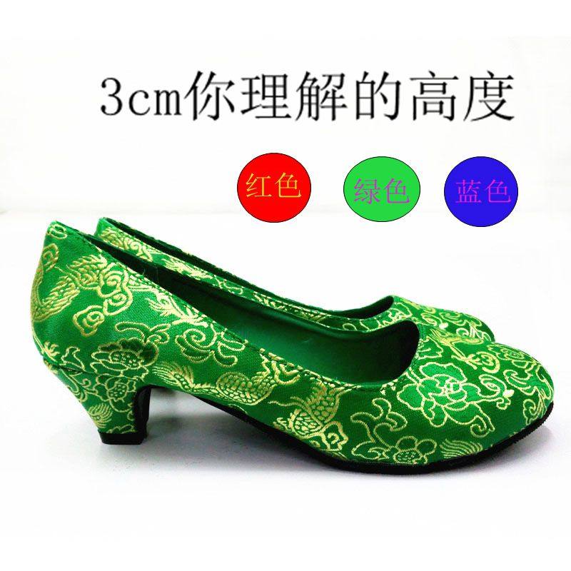 春夏绿色 坡跟布鞋老北京 中国民族风绣花鞋女鞋单鞋平底广场舞蹈