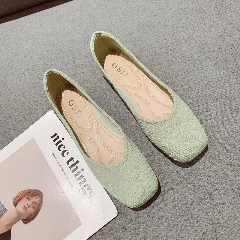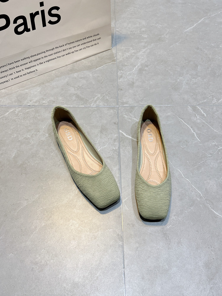 仙女风温柔平底单鞋女2025年夏季新款法式方头浅口绿色软底瓢鞋秋