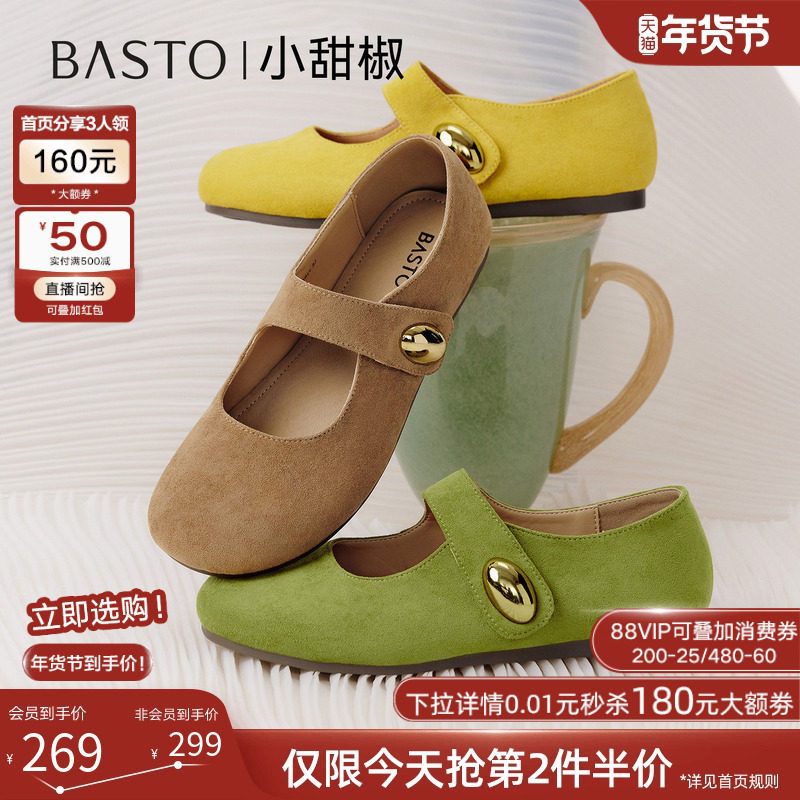 【小甜椒】百思图25秋新款黄色勃肯鞋平底女浅口绿色单鞋D3189CQ5