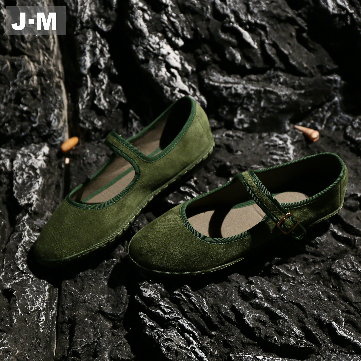 J·M(服装鞋帽)复古绿色玛丽珍鞋女一字扣平底单鞋百搭芭蕾舞鞋