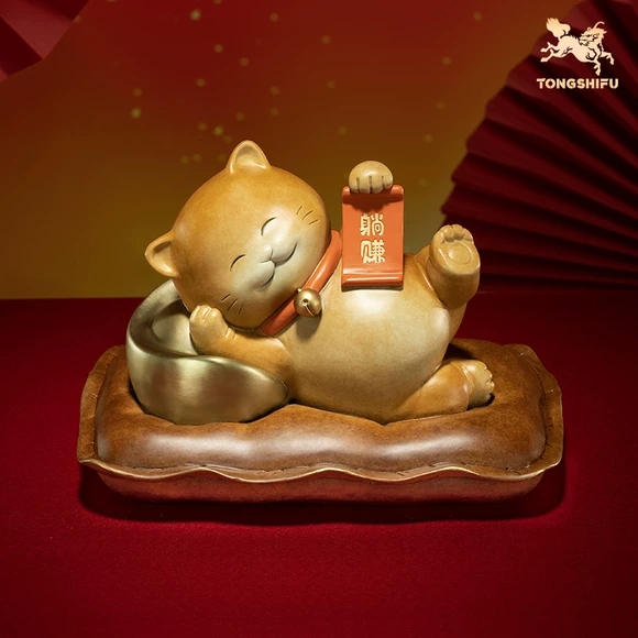 铜师傅 全铜摆件《躺赚》 家居客厅乔迁礼品招财猫创意装饰工艺品