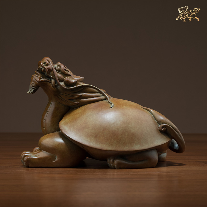 神兽霸下丨琢匠原创国风青铜桌面茶宠玄武龙龟全铜摆件小号手把件