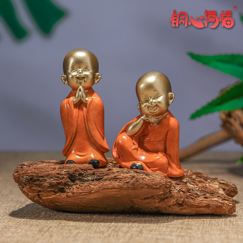 全铜摆件中式小和尚桌面茶宠小沙弥客厅电视柜家居装饰摆件工艺品