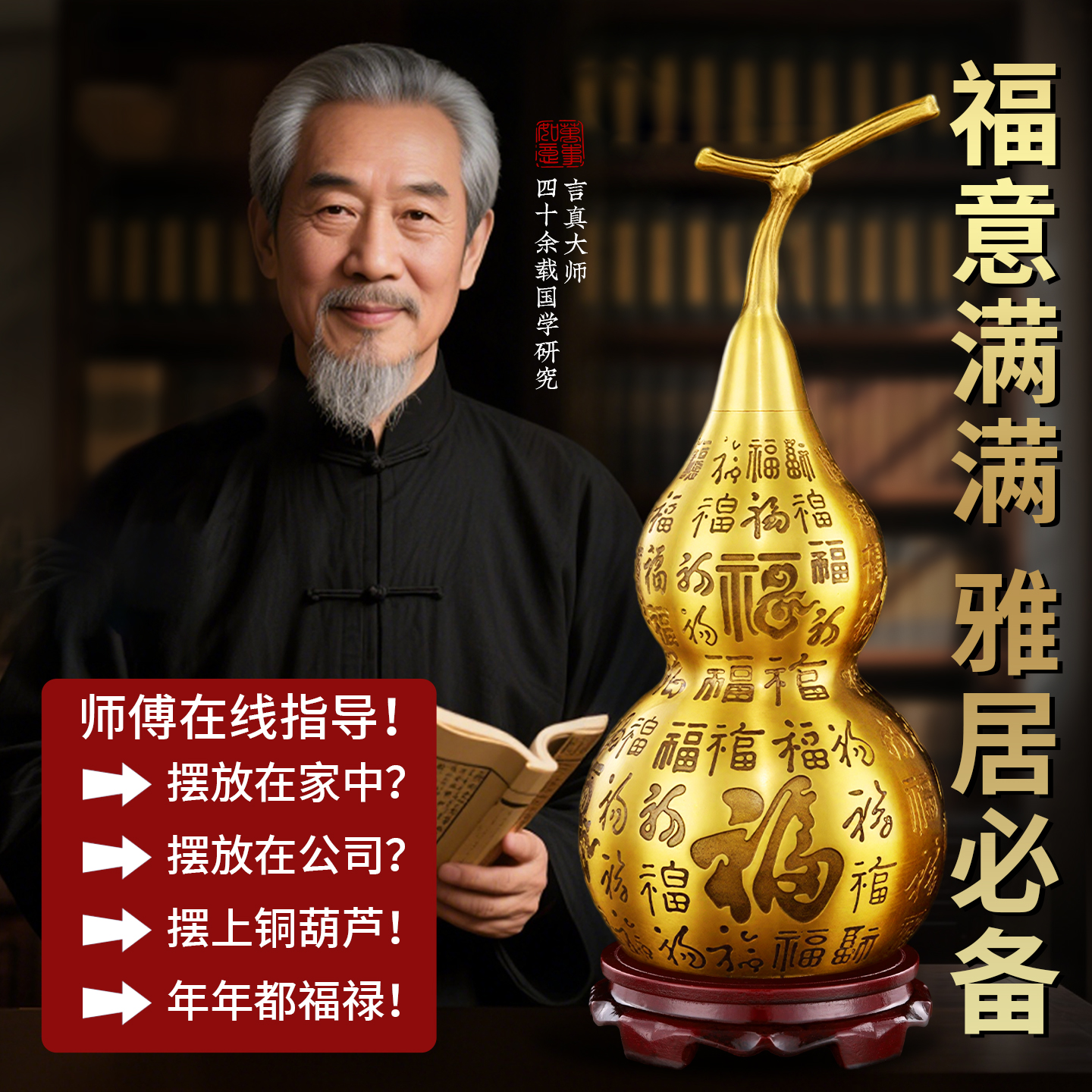 百福铜葫芦摆件黄铜镇宅铜葫芦开盖开口空心家用玄关全铜葫芦五帝