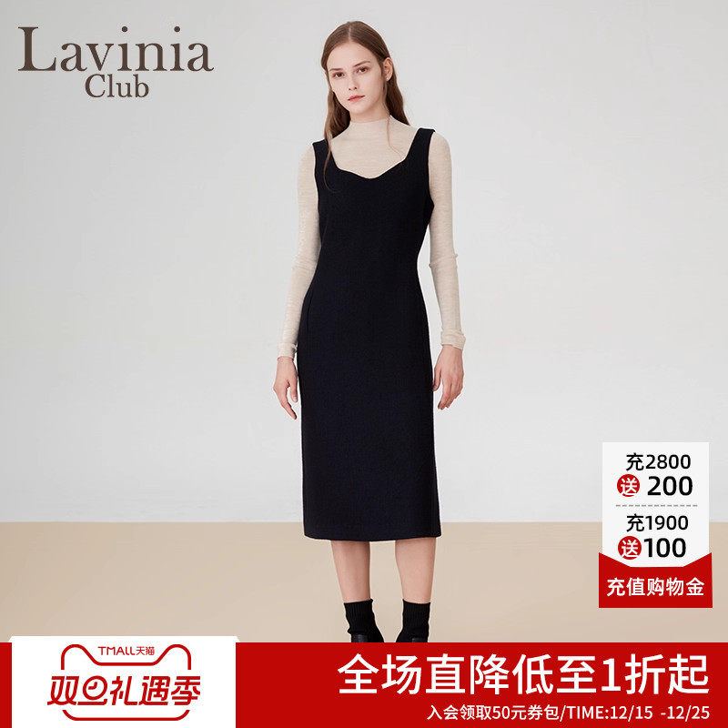 Lavinia赫本风小黑裙春秋新款V领修身显高气质打底吊带连衣裙