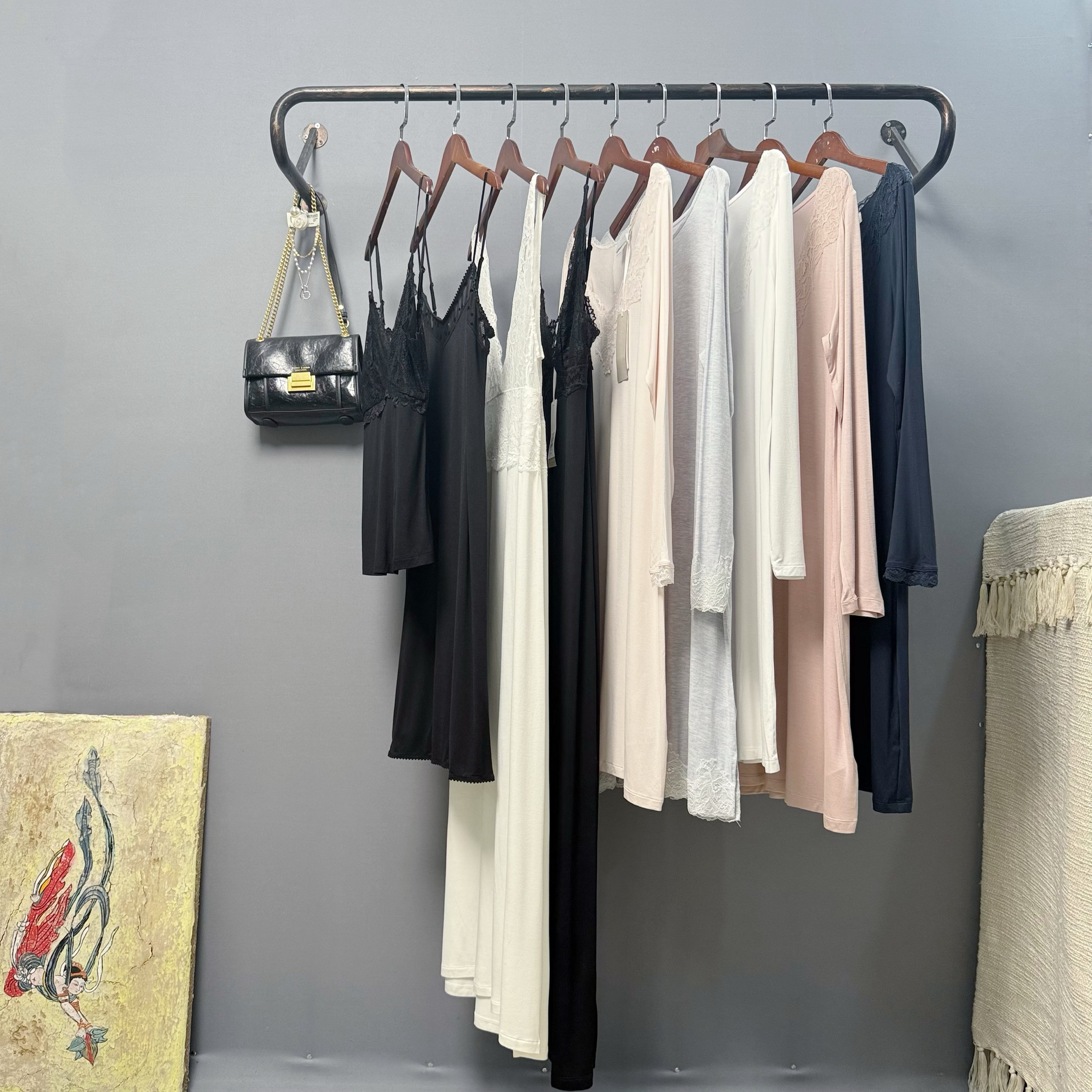 英国家居品牌舒适软蕾丝长袖连衣裙女夏性感V领修身显瘦吊带裙子
