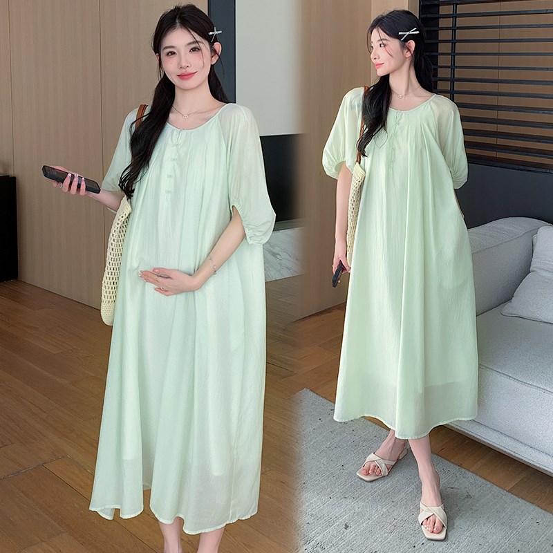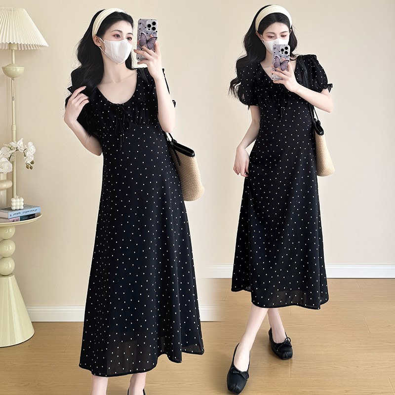 孕妇装夏装泡泡袖波点雪纺连衣裙时尚休闲显瘦裙子夏季短袖孕妇裙