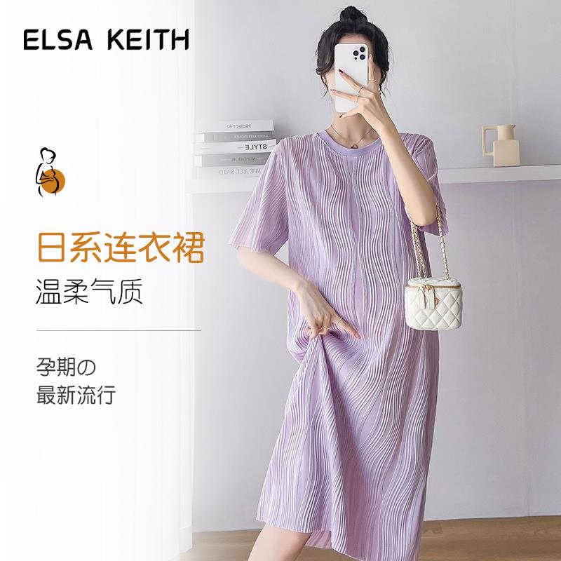 日本ELSA KEITH孕妇装夏装连衣裙真丝雪纺冰丝孕期短袖T恤裙子女