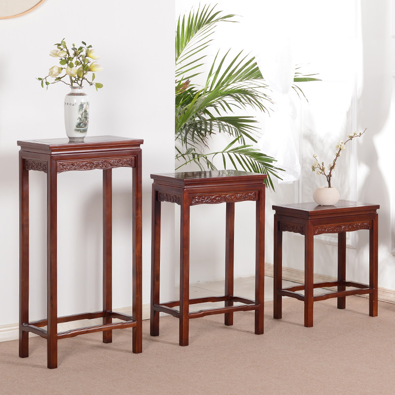 全实木花架中式客厅置物盆景鱼缸玄关奇石艺术品摆件长条架几兰花