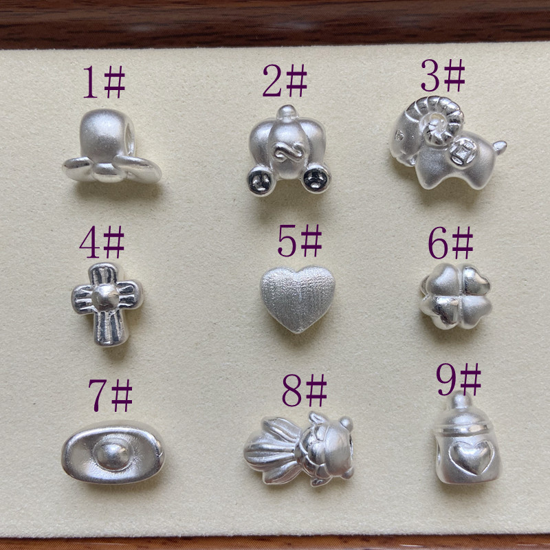 3D硬银 999足银爱心 元宝 蝴蝶结 鲤鱼 锦鲤 金钱羊隔珠 编绳配件