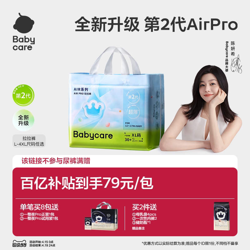 【新升级】babycare拉拉裤airpro超薄透气纸尿裤宝宝夏日尿不湿