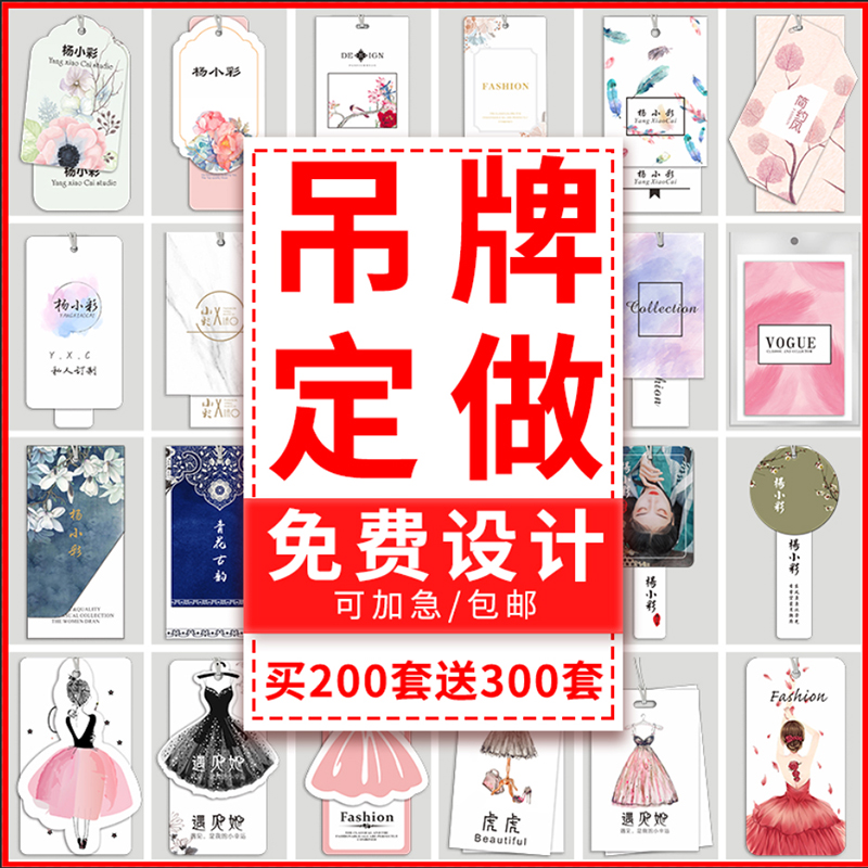 吊牌定制高档服装店商标签挂牌订做logo女装价格设计衣服吊牌定做