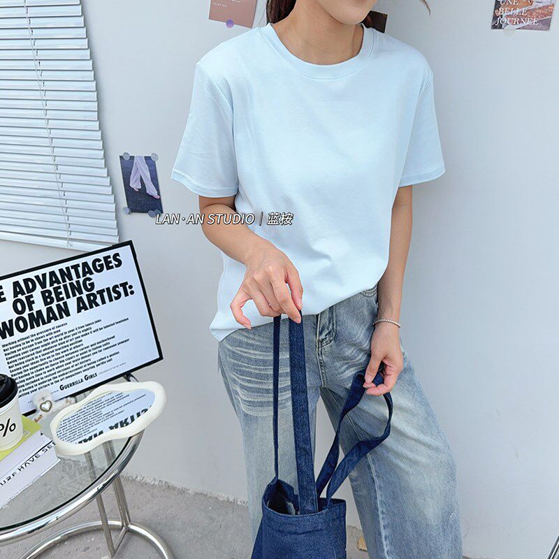 夏季新品水柔双面棉短袖圆领纯色净版打底宽松百搭学生T恤女正肩