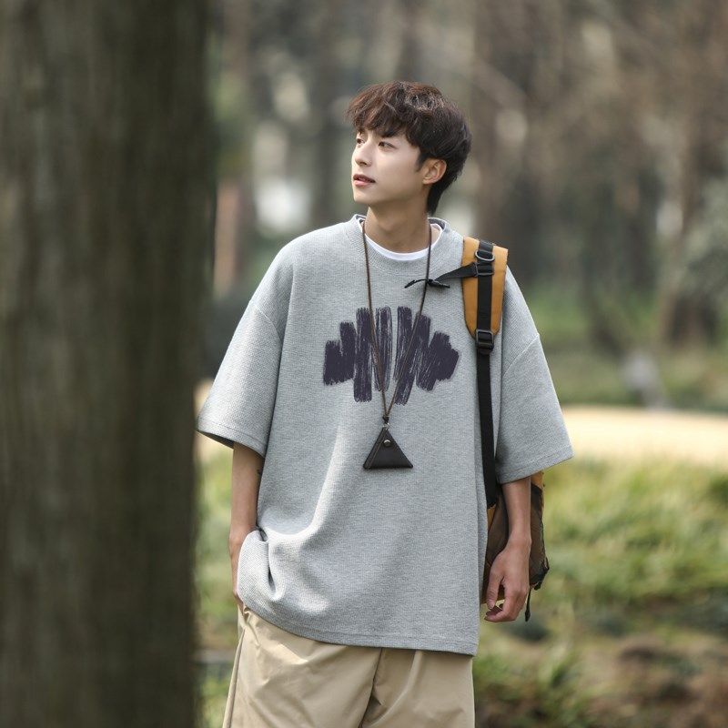 夏季短袖T恤男装宽松小清新ins半袖上衣bf港风潮流学生纯色体恤女
