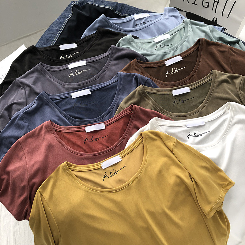 莫代尔短袖T恤女夏季木代尔短款宽松纯色半袖显瘦上衣学生休闲T恤