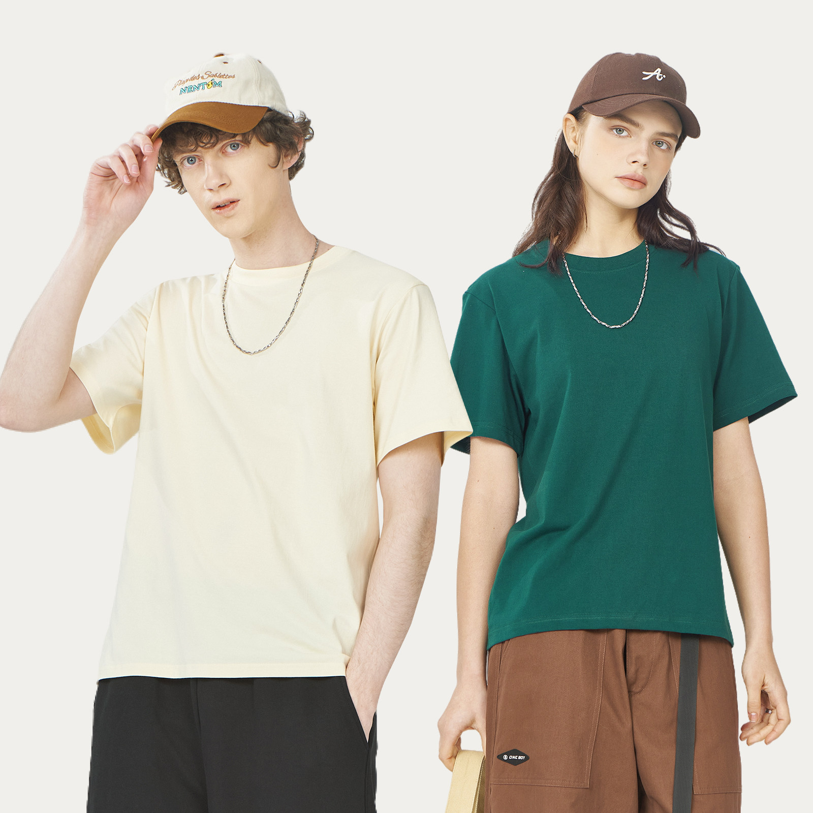 方少男2024夏季230g轻薄款纯棉圆领短袖T恤男女款宽松纯色学生TEE