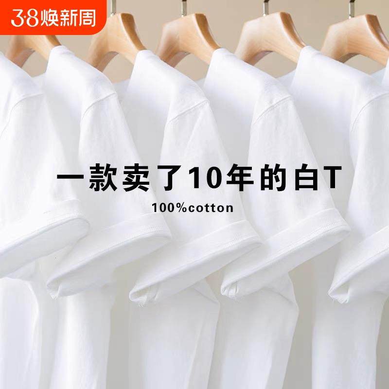 短袖女2025年新款棉质白色短袖纯色t恤女休闲宽松学生短款上衣夏
